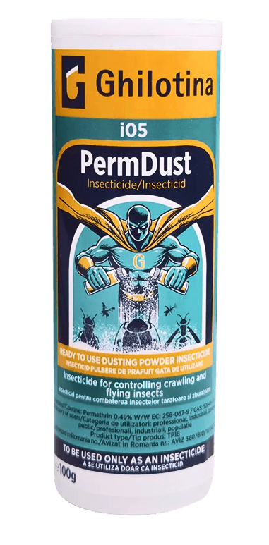 "In pest control situations where liquid insecticides are prohibited, i05 Perm Dust is the perfect choice. A dust formulation with 0.5% permethrin, it provides excellent control without short-circuit risks, effective against ants, cockroaches, and more."